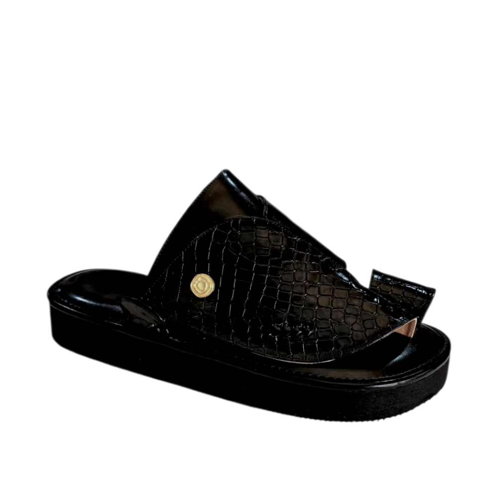 حذاء شرقي أنيق ، مبطن بالكامل جلد طبيعي ، دعسة ناعمة ميموري فوم، ارتفاع مريح ٣.٥ سم من الخلف و٣ سم من الأمام، راحة وفخامة