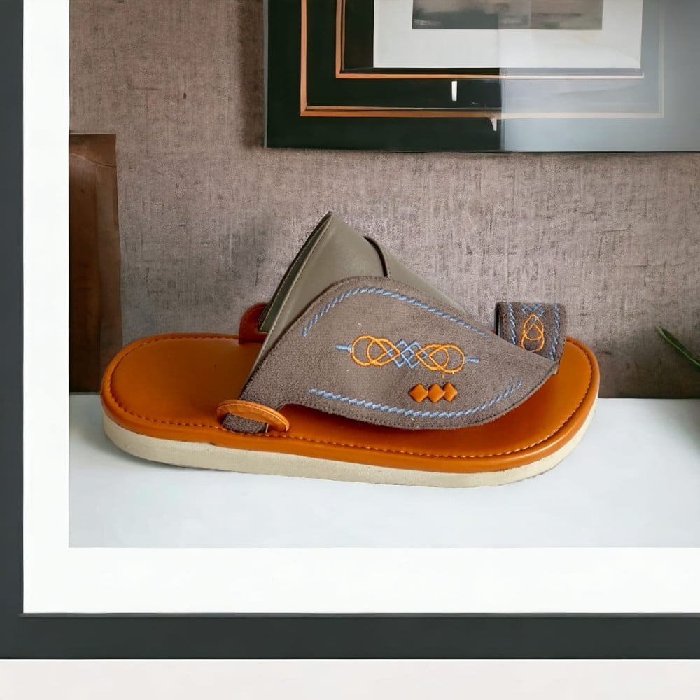 حذاء شرقى مطرز - زيتونى تنسيق برتقالى