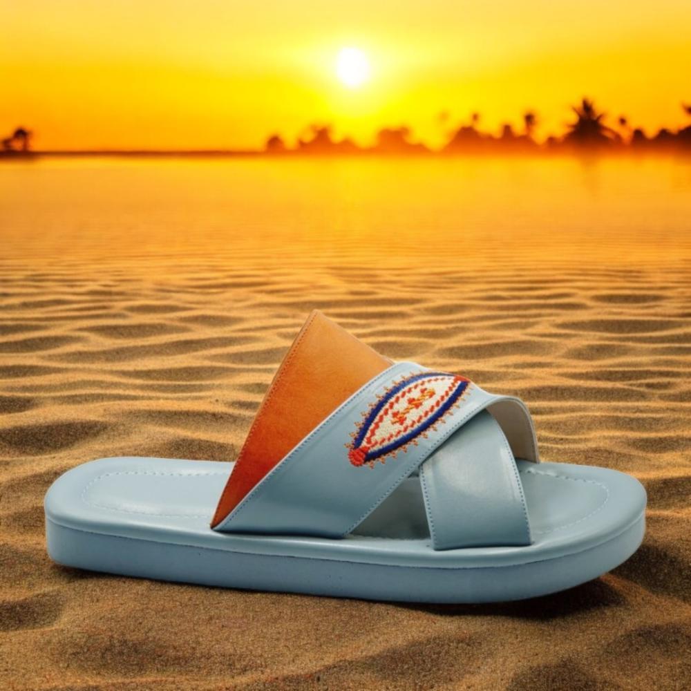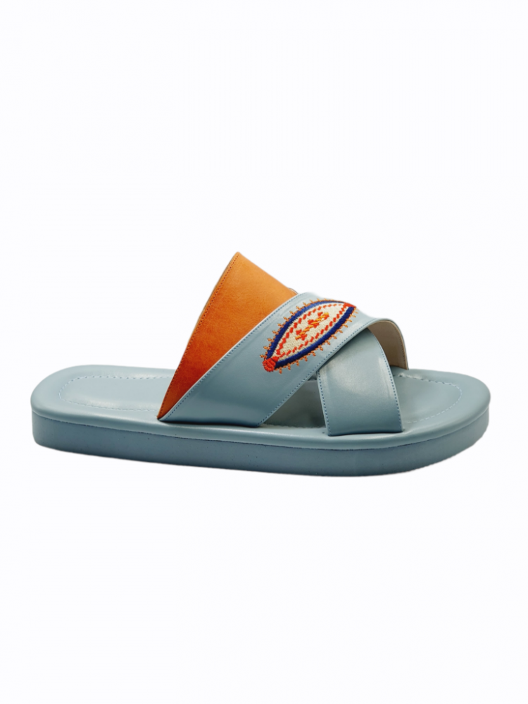 حذاء سماوي في برتقالي بدون صابع يدوي صناعة وطنية سعودية