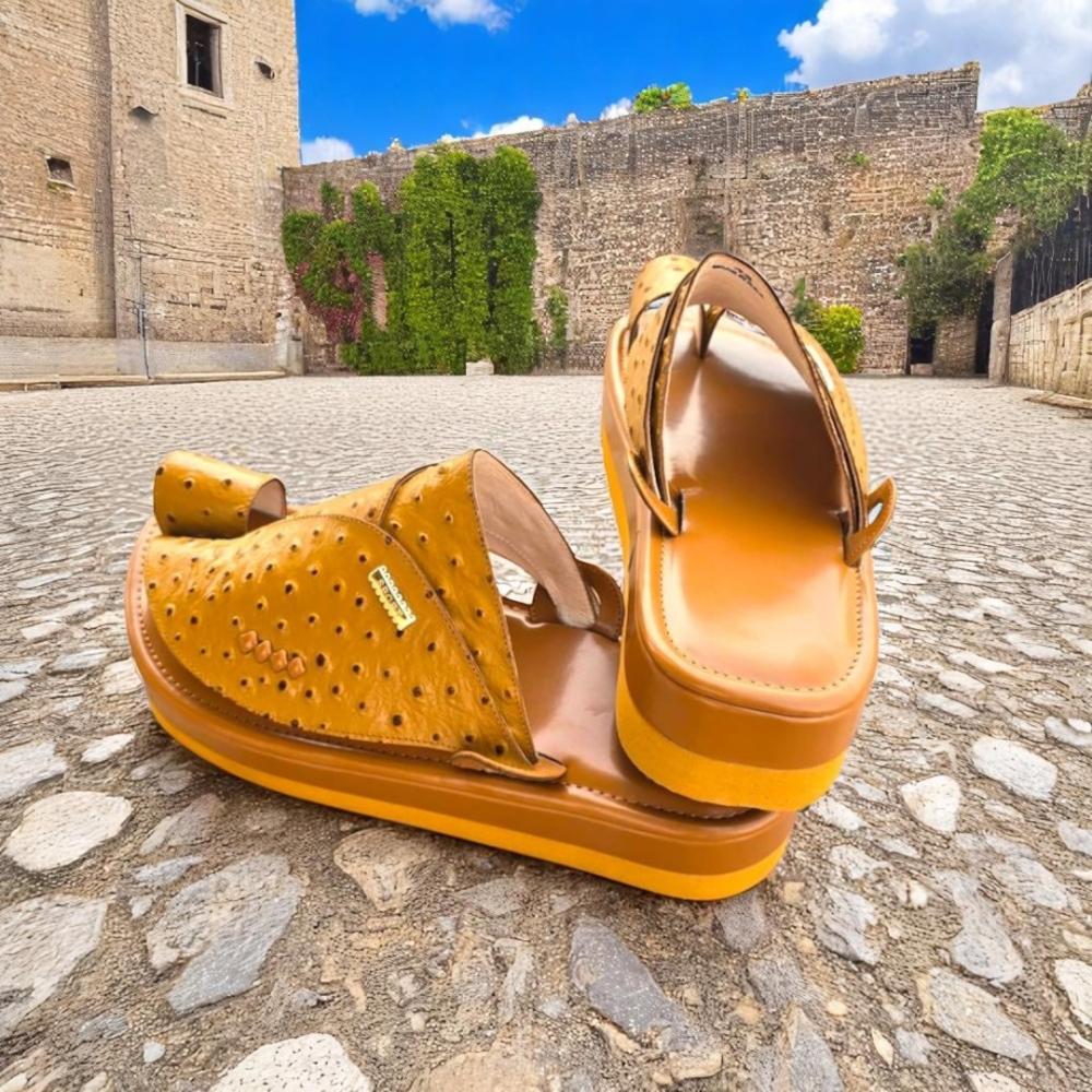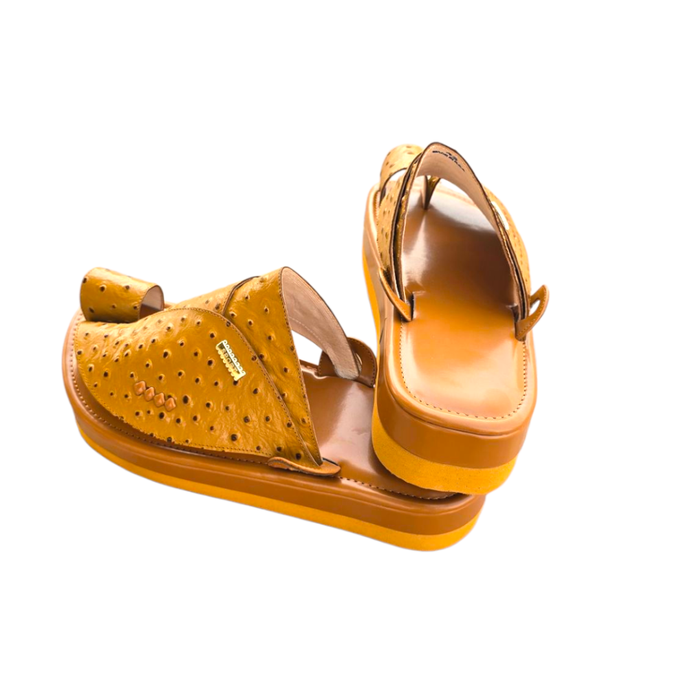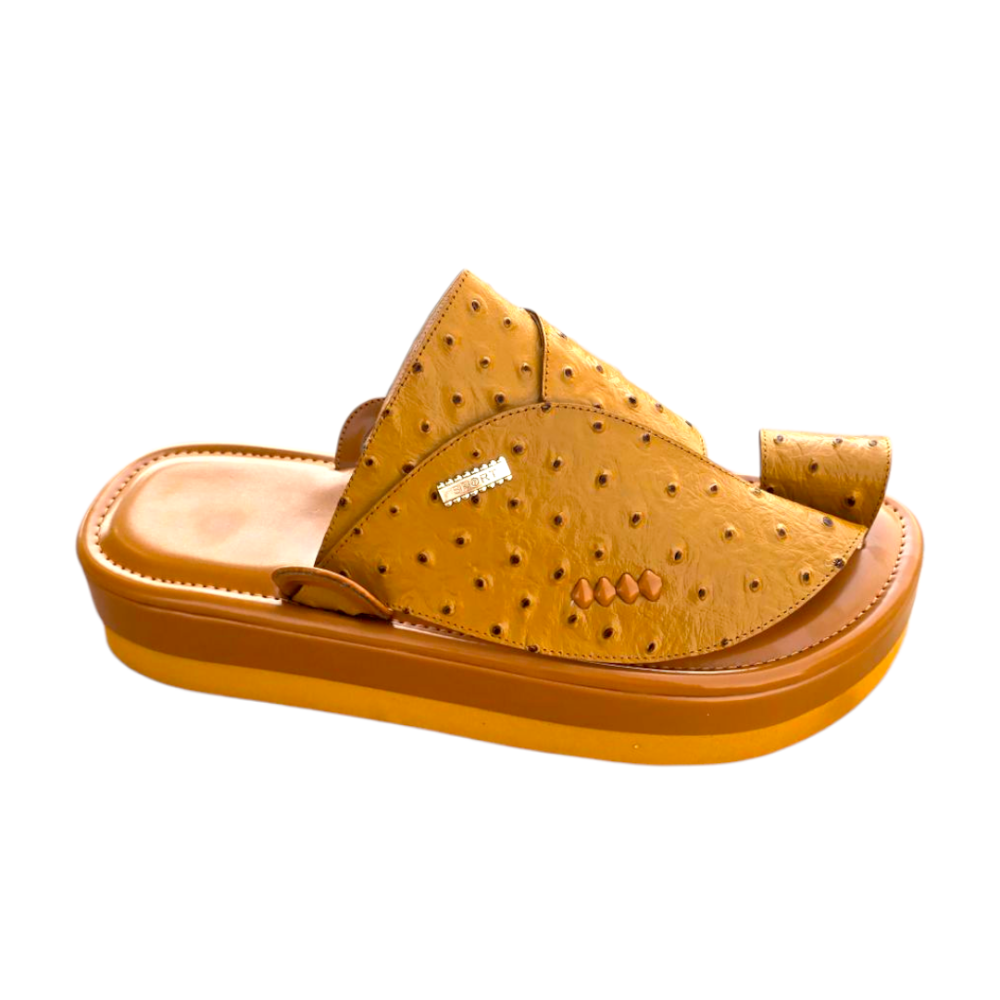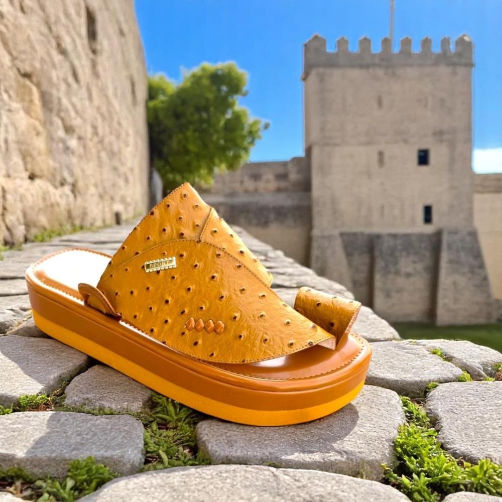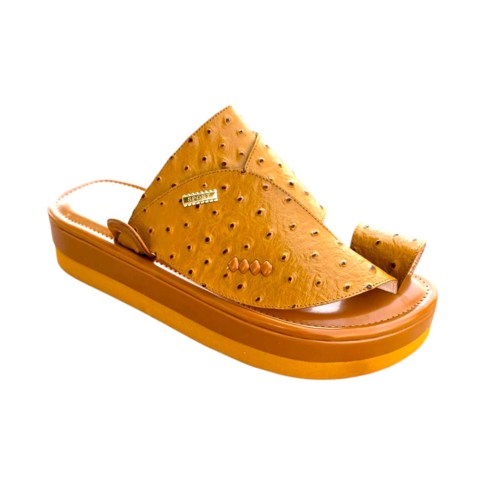 نعال شرقي رجالي بتصميم أرضية دبل بارتفاع ٤.٥ سم من الخلف و٣ سم من الأمام، جلد طبيعي فاخر ودعسة مريحة، صناعة وطنية تعكس الأصالة والراحة لإطلالة رجالية سعودية متكاملة.