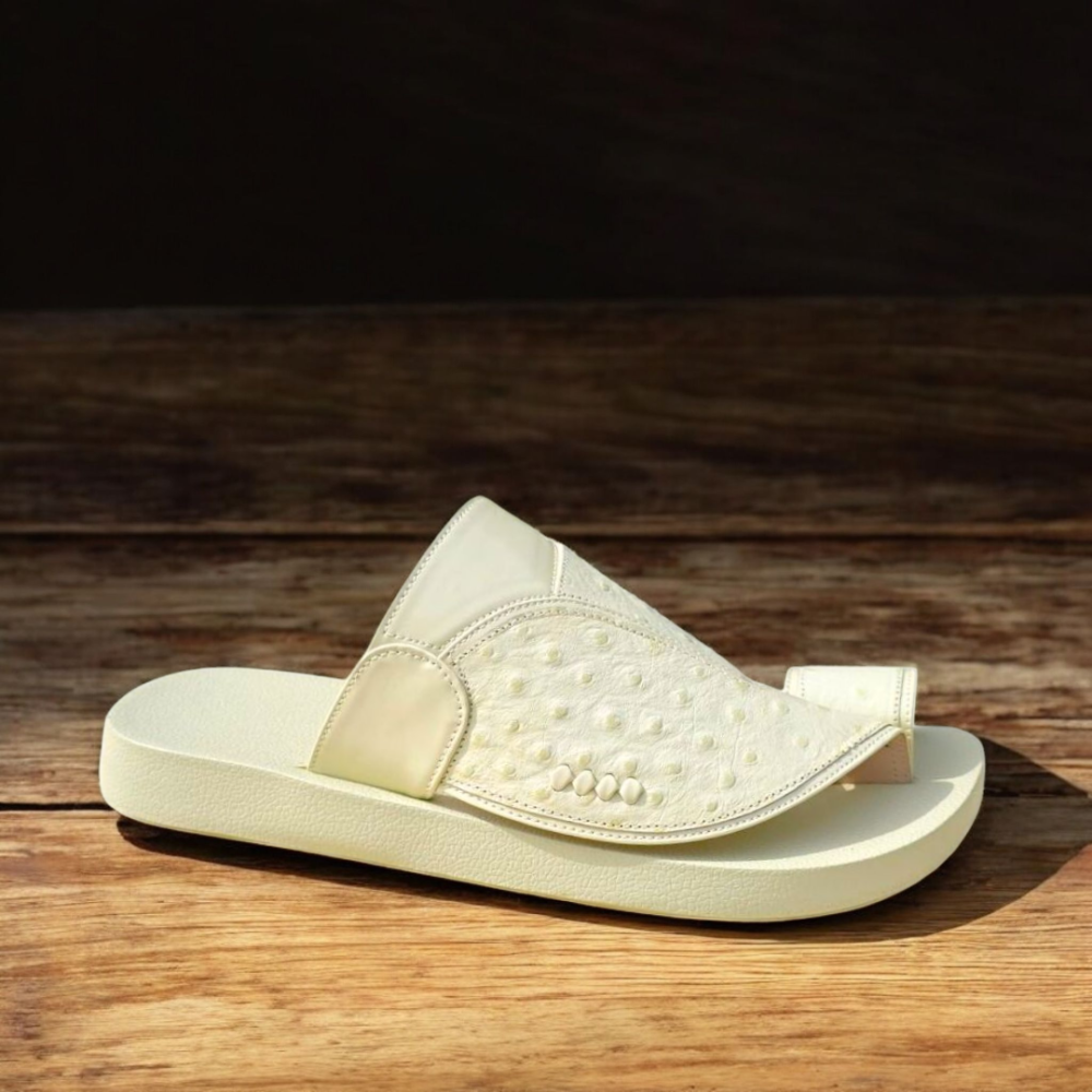 حذاء شرقي مستورد مصنوع من جلد طبيعي عالي الجودة، بتصميم يضمن الراحة مع أرضية لينة وارتفاع مثالي ٢.٥ سم من الخلف و٢ سم من الأمام – مثالي للاستخدام اليومي بإطلالة أنيقة.