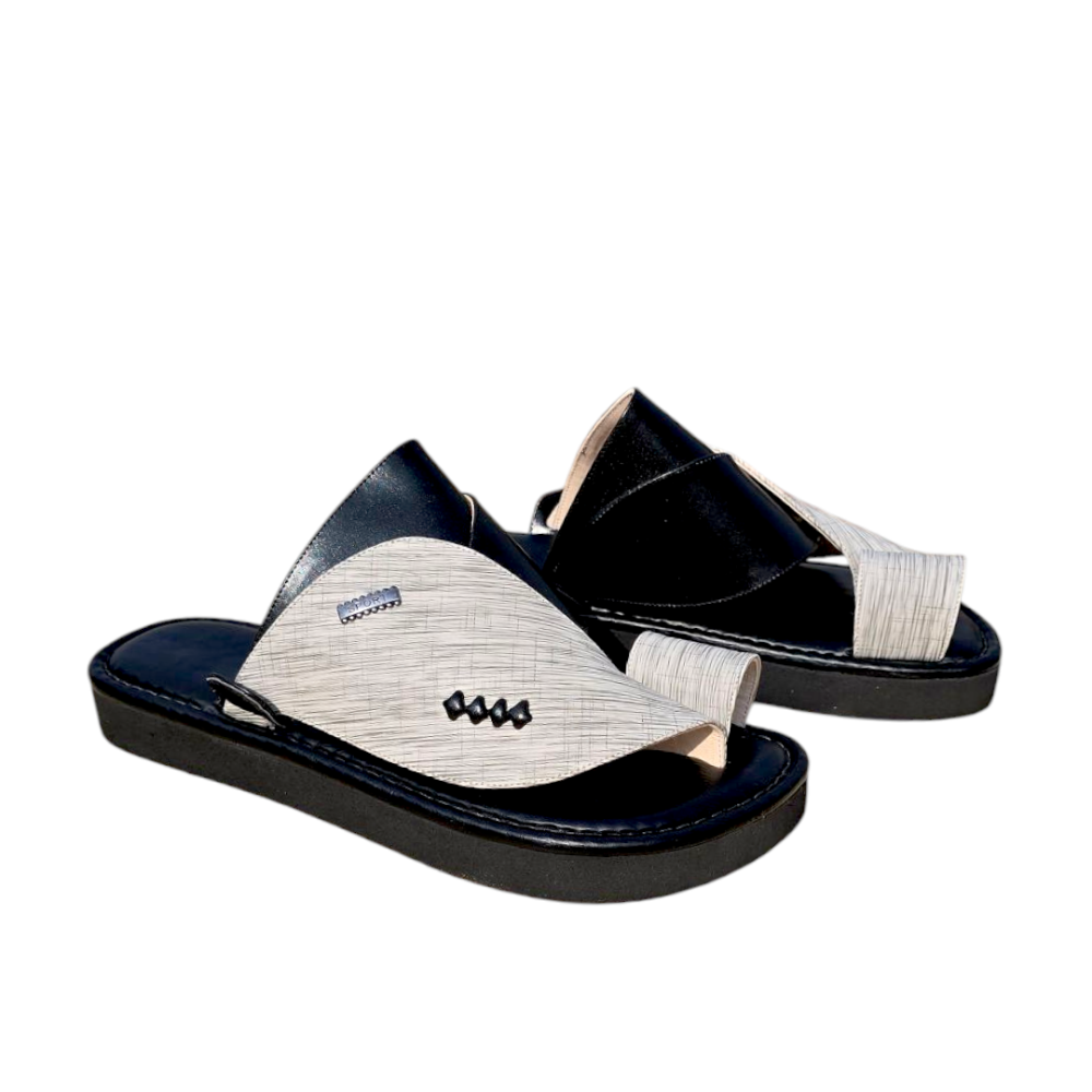حذاء شرقي زبيري بصناعة سعودية فاخرة، ببطانة جلد طبيعي بالكامل ودعسة لينة بميموري فوم، مع ربر مريح بارتفاع ٣ سم من الخلف و٢ من الأمام، تصميم أنيق ومريح يناسب الذوق الخليجي.
