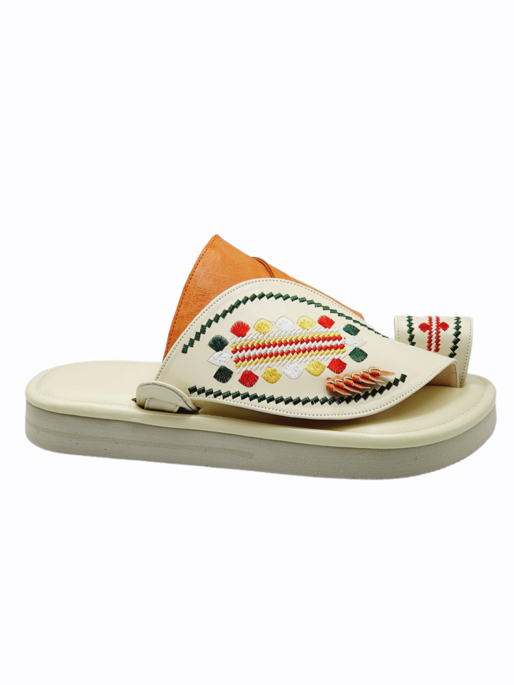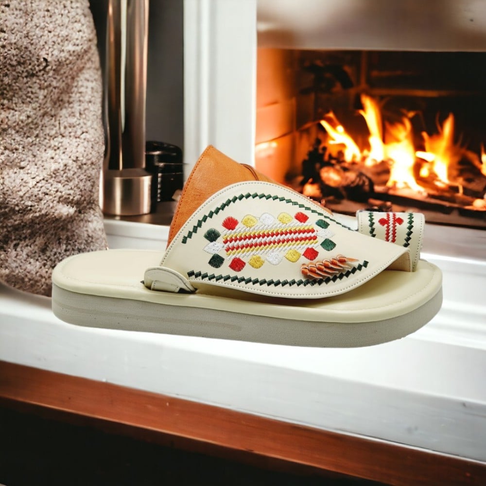 حذاء شرقي سكري مطرز فاخر بجلد طبيعي ناعم، دعسة ميموري فوم مريحة، وبطانة جلد طبيعي بالكامل. تصميم أنيق بلمسة تراثية عصرية، مناسب للمناسبات والاستخدام اليومي. صناعة سعودية.