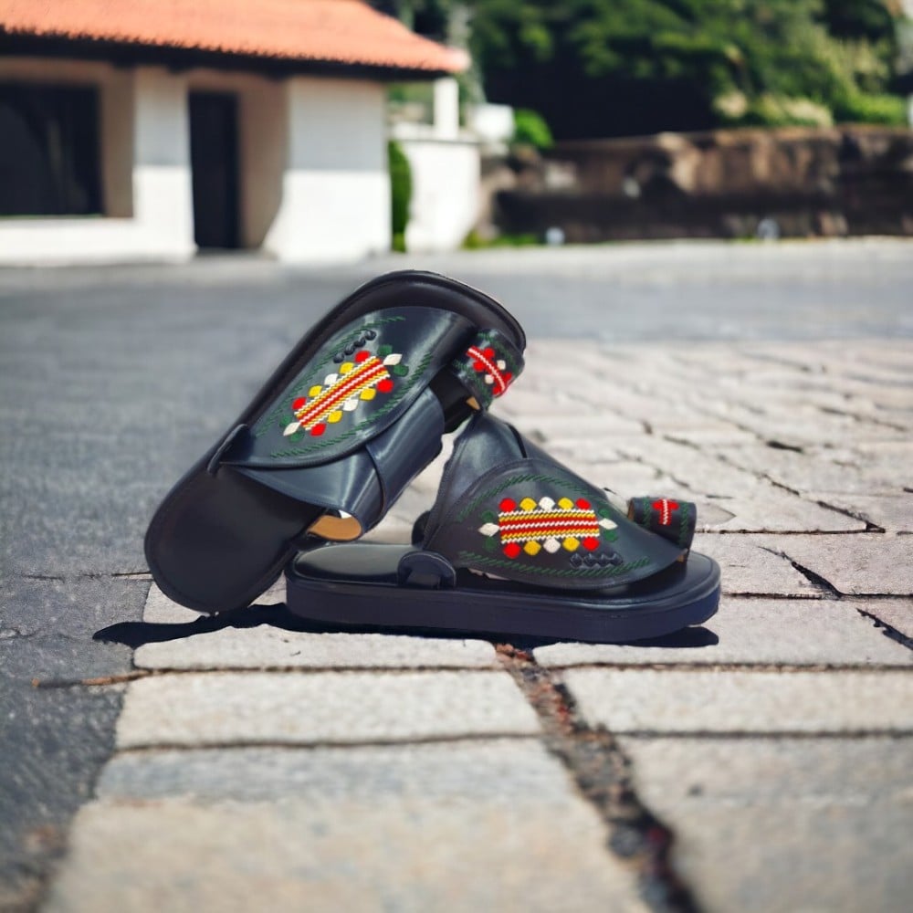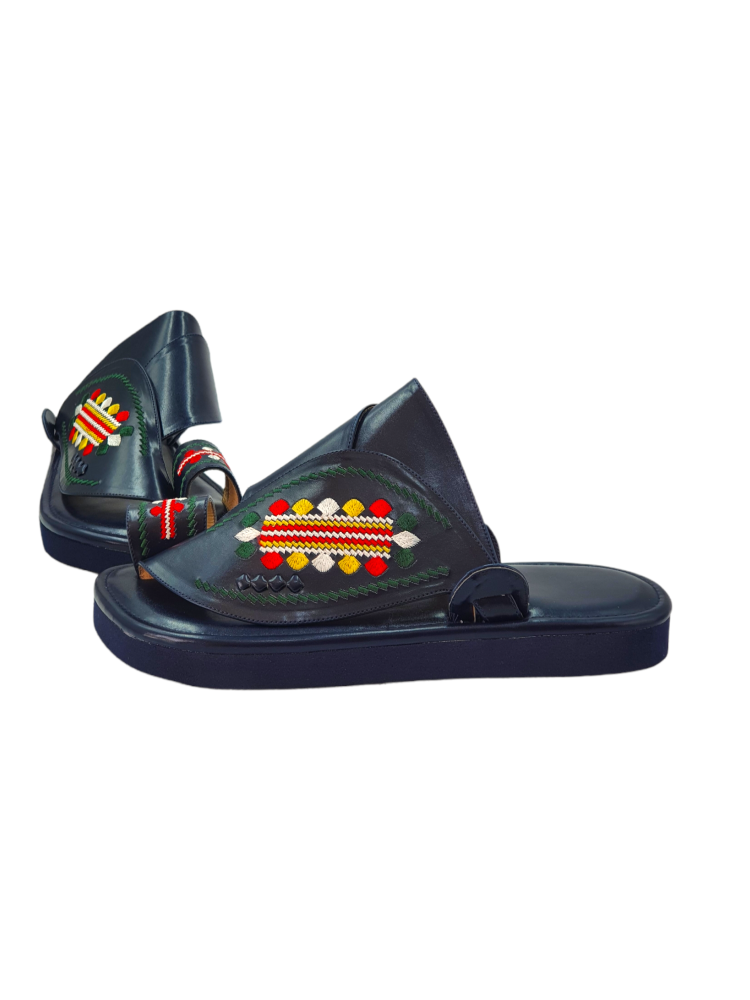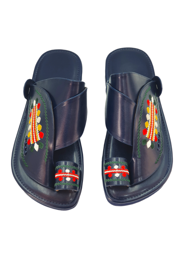 حذاء شرقي مطرز بلون مميز يجمع بين الفخامة والراحة، بطانة داخلية بالكامل من الجلد. دعسة ناعمة ميموري فوم، بجودة صناعة وطنية سعودية تليق بالرجل الخليجي.